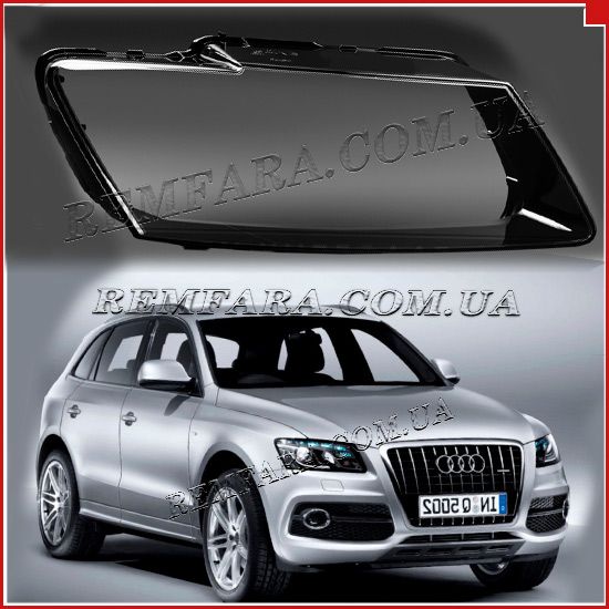 Скло фари до Скло фари Audi Q5 / SQ5 (8R) (2008-12). Дорестайлінг праве, виготовлене з оптичного полікарбонату, є замінним елементом, призначеним для відновлення частини світлового обладнання автомобіля. Воно пропонується як альтернатива повній заміні фари, дозволяючи оновити лише скляну частину.